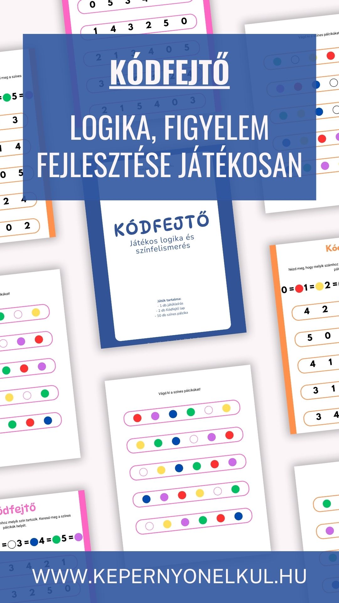 Kódfejtő egy izgalmas, nyomtatható fejlesztőjáték, amely játékosan támogatja a színfelismerést, a vizuális észlelést és a logikus gondolkodást. A gyerekek különböző színsorozatokat próbálnak megfejteni számkód alapján – mintha csak igazi kis detektívek lennének! A színek és számok párosítása segíti a vizuális emlékezetet és megalapozza a matematikai gondolkodást, miközben vidáman tanulnak.